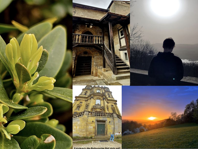 KlOstern 2023: Collagen aus den Seminaren Survival, Improtheater, Fotokurs & Zeichnen